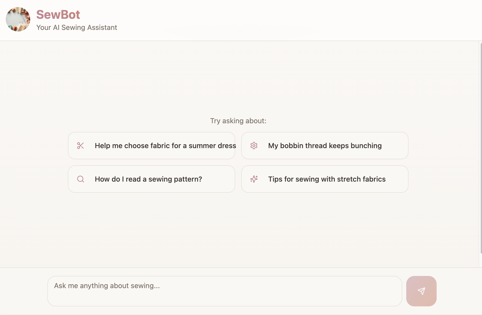 SewBot bridges the gap between technical guidance and creative mentorship. It’s a conversational AI that: